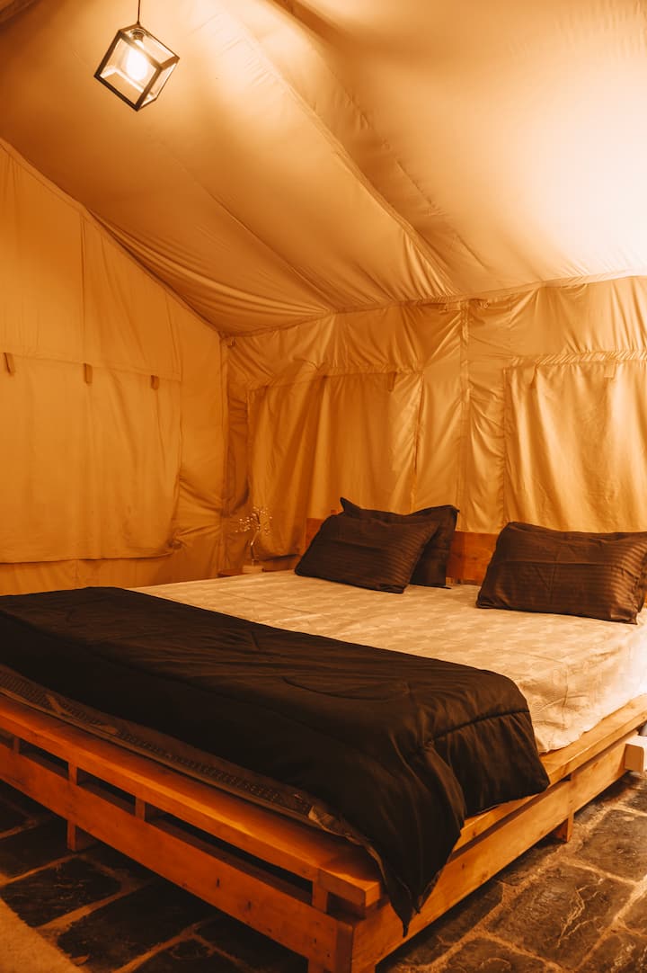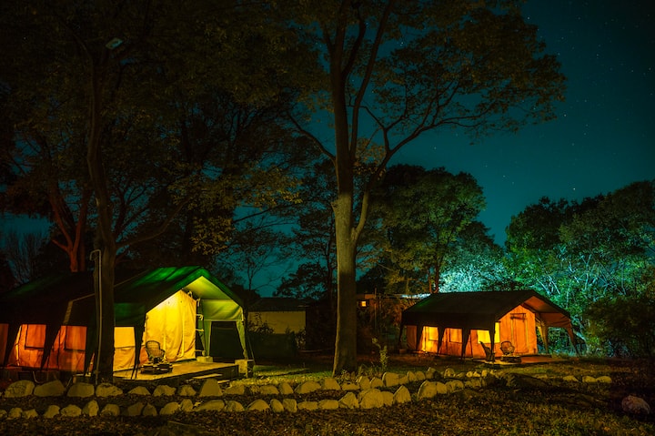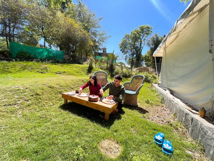 Deux tentes de luxe privées — idéales pour les groupes de deux, les couples familiaux ou une escapade romantique avec un accès facile aux attractions culturelles et de parapente de Bir. Réservez vos dates aujourd'hui pour un séjour paisible au bord de la rivière avec des activités en plein air et des expériences locales.
