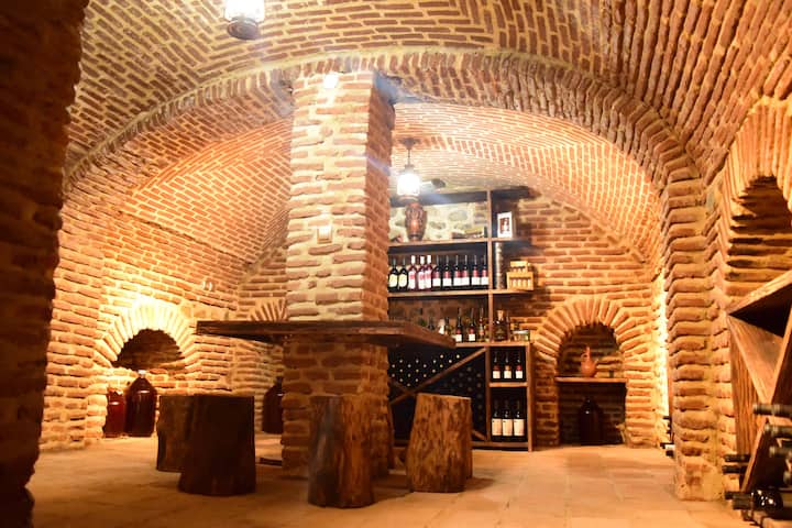 Nous exploitons une cave à vin centenaire, où vous pouvez déguster et acheter un large éventail de vins géorgiens, y compris du vin fait maison et du chacha (vodka). La gestation pour nos voyageurs est de 20