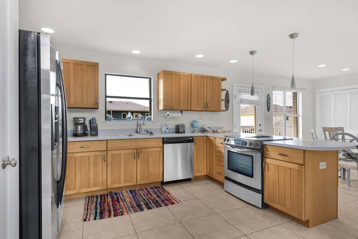 Évadez-vous dans cette escapade accueillante à Pensacola Beach au Blue Heron. À seulement deux pâtés de maisons du golfe, une promenade pavée pratique vous amène sur le sable blanc en quelques minutes. Le logement offre trois chambres confortables et un loft, pouvant accueillir jusqu'à huit voyageurs, parfait pour les familles ou les groupes. Les logements comprennent une suite avec très grand lit, une chambre avec grand lit, une chambre avec deux lits simples et un loft avec deux lits simples. Deux salles de bain bien aménagées comprennent à la fois un bain à remous et une douche à l'italienne, ainsi qu'un ensemble douche/bain pour plus de commodité. Avec un design côtier élégant et un emplacement privilégié à proximité des restaurants, des attractions et des eaux scintillantes du Golfe, Blue Heron est le mélange idéal de confort et de plaisir en bord de mer.
