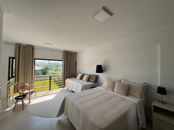 Avec de grandes fenêtres orientées vers le nord, vous aurez une atmosphère agréable et chaleureuse toute l'année, permettant beaucoup de lumière du soleil et de brises de mer, créant un environnement relaxant et invitant à vous déconnecter de votre routine.