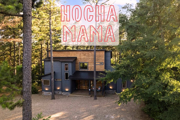 Évadez-vous à Hochamama, un chalet moderne de 4 chambres et 4,5 salles de bain à Broken Bow, OK, pouvant accueillir jusqu'à 16 personnes. Trois suites avec lit king size et une chambre amusante avec lits superposés et neuf lits jumeaux assurent le confort pour tous. Profitez d'une salle de jeux dans le loft avec une arcade rétro, un jeu de palets et des jeux de société. Le salon ouvert comprend des fenêtres du sol au plafond, 7 télévisions intelligentes et 2 cheminées. À l'extérieur, détendez-vous dans le spa, rassemblez-vous autour du foyer, faites un barbecue ou jouez aux fers à cheval, le tout à quelques minutes des restaurants, des sentiers et des aventures lacustres de Hochatown.