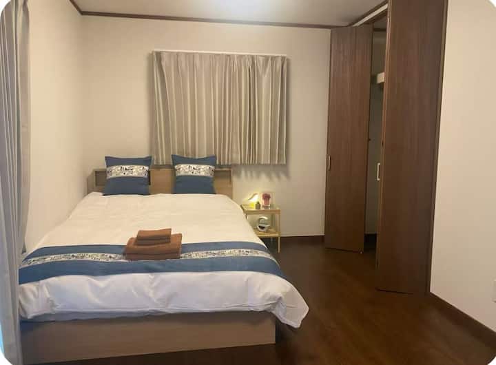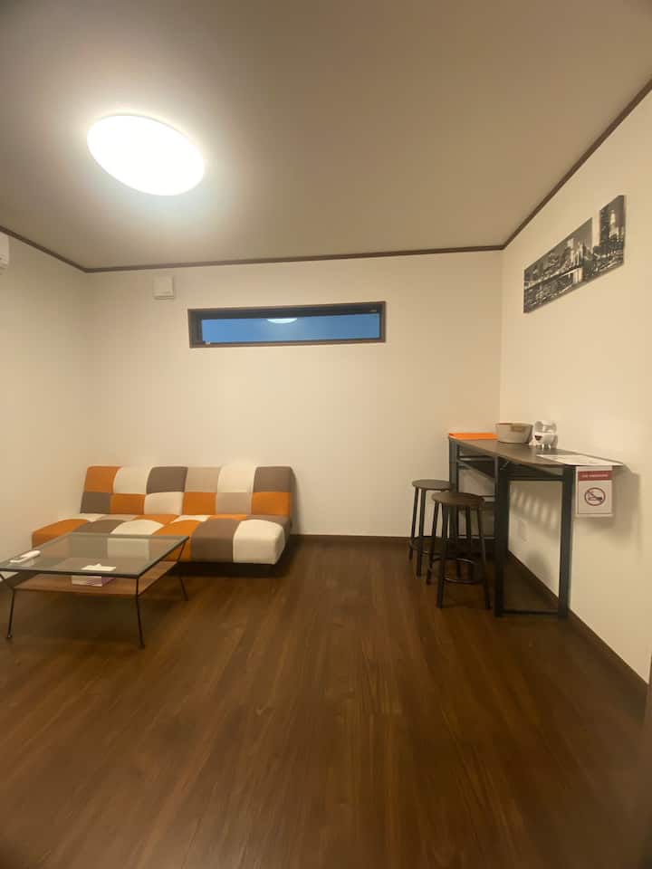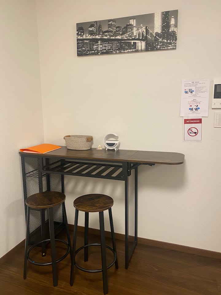 La chambre dispose d'une note en chinois, anglais et japonais, ainsi que des instructions d'utilisation. La chambre est une chambre séparée avec deux lits simples pour 1 à 2 personnes, un canapé, des tables et des chaises en bois pour le bureau. La cuisine est équipée d'installations pratiques telles que de la vaisselle/un réfrigérateur/un micro-ondes, etc. Nous espérons que vous passerez un séjour confortable.