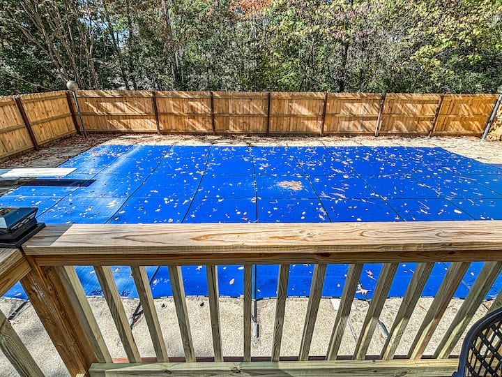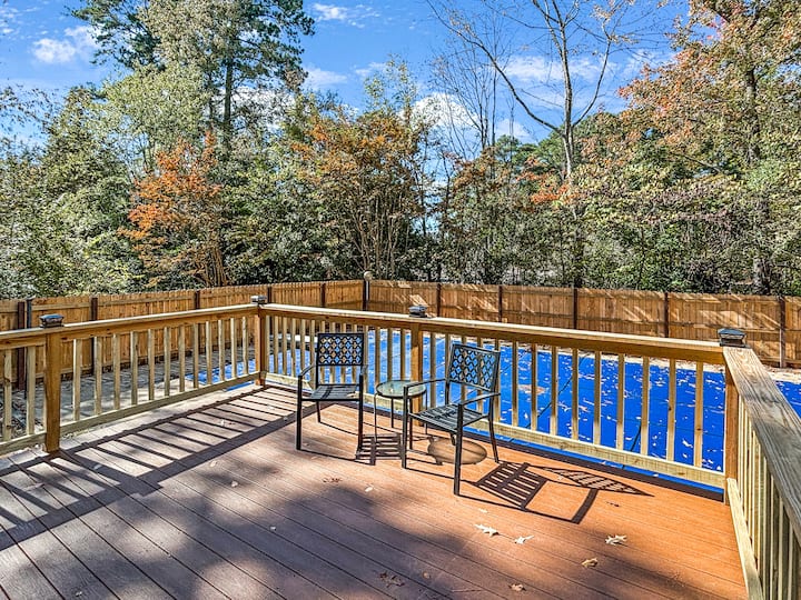 À l'intérieur, vous trouverez des espaces de rassemblement confortables, une cuisine entièrement équipée avec café et en-cas gratuits, et une grande suite parentale conçue pour le confort. À l'extérieur, profitez des soirées autour du foyer, d'une baignade dans la piscine ou d'un dîner sur la terrasse pendant que le soleil se couche sur le lac voisin.