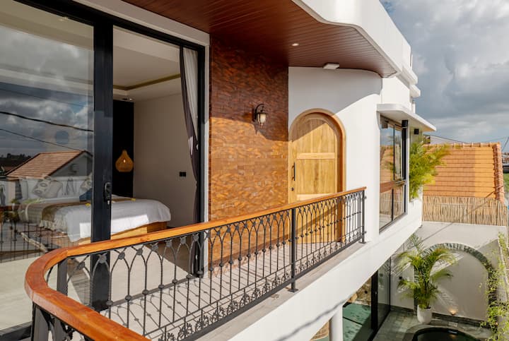 🌴 Espace extérieur : profitez d'une piscine privée de 8 × 3 m avec une douche à effet de pluie rafraîchissante et un accès direct depuis le salon, créant l'endroit idéal pour les baignades matinales et les après-midi de détente. Montez sur le toit-terrasse, avec des fauteuils poires et une vue apaisante sur les rizières, idéal pour les couchers de soleil, l'observation des étoiles ou la détente avec un café ou un cocktail.