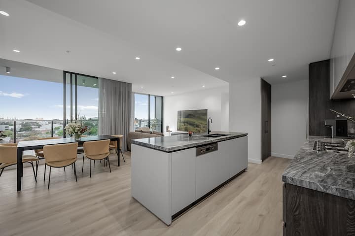 À l'intérieur, détendez-vous dans votre refuge luxueux : un espace de vie spacieux, une literie moelleuse, une décoration soignée et une esthétique moderne et apaisante conçue pour la relaxation et l'inspiration.Que vous soyez ici pour une escapade à la plage, un séjour romantique ou un voyage d'affaires élégant, ce sous-penthouse vous offre une expérience inoubliable à St Kilda.