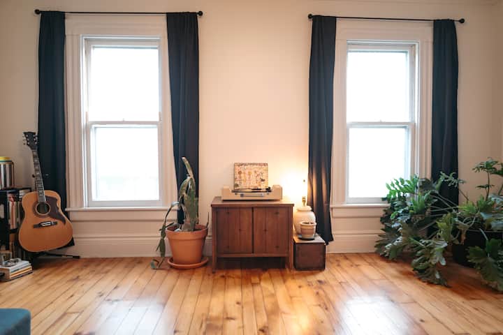 Bonjour! Je suis Callan, artiste et auteur-compositeur avec mon groupe, The Demos, depuis plus de deux décennies. J'ai rénové cet appartement avec mon cousin Joseph. C'est chez moi, donc on y retrouve mes passions.