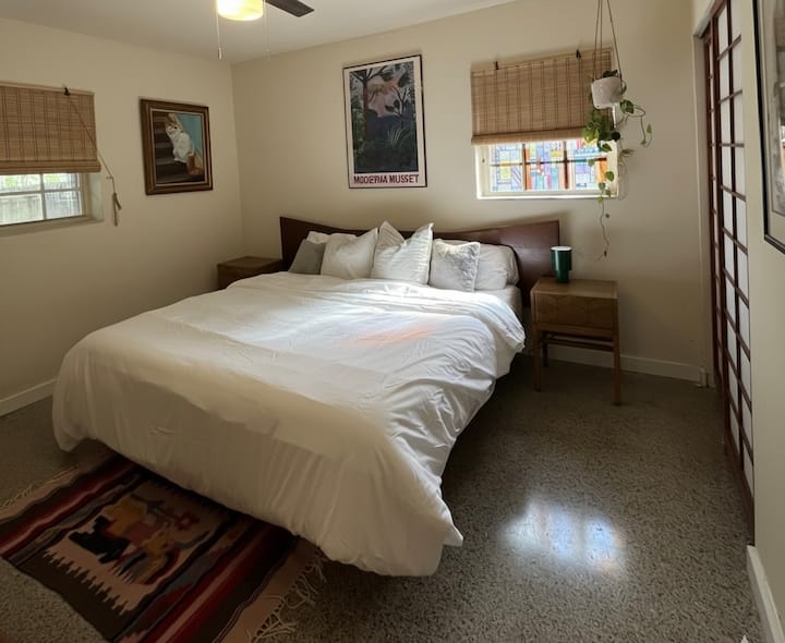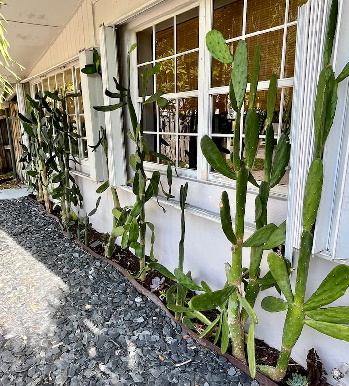 Paradis tropical moderne du milieu du siècle avec cour clôturée