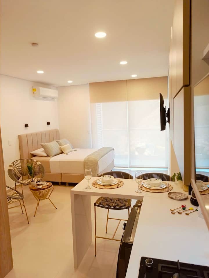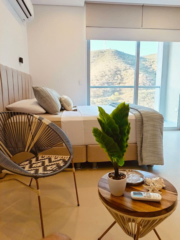 Spectaculaires aptes Près de la plage à 200 mètres à Playa Salguero, Rodadero Sur, avec 2 piscines, 4 jacuzzis , 2 Turcs, 2 Saunas, Salle de sport, aire de jeux, magasin, salle de jeux BillE, Ping Pong, jeux de société, Coworking avec WIFI climatisé, venez profiter de vos vacances ou voyages d'affaires et ayez une expérience merveilleuse dans ces hébergements de grand confort et de plaisir