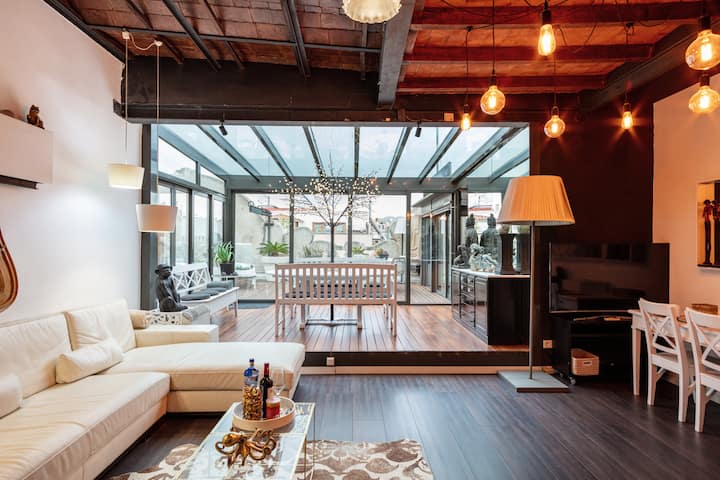 Impressionnant appartement-terrasse design dans un bâtiment historique