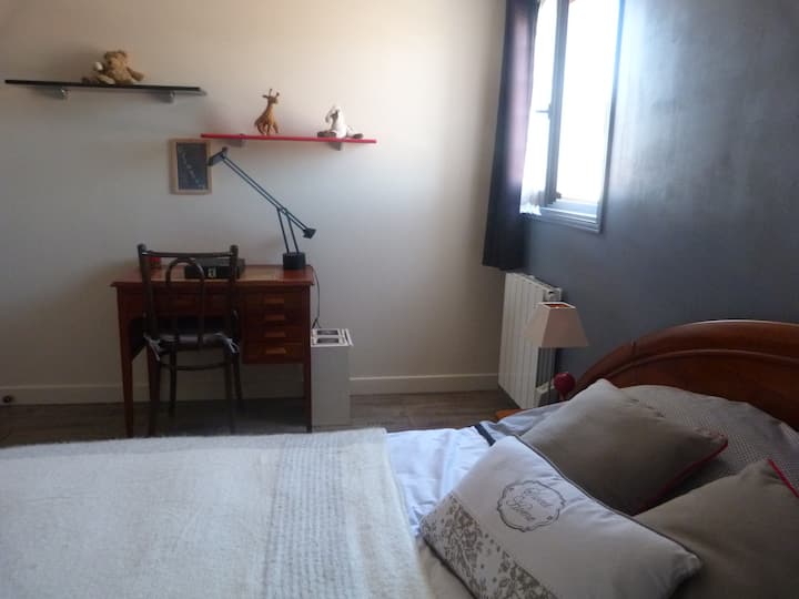 Une chambre avec wifi bien aménagée pour travailler.