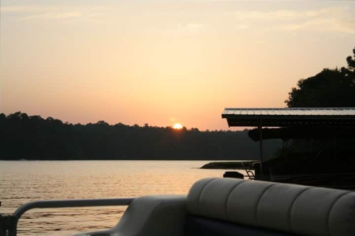 L'UNE DES LOCATIONS AU BORD DU LAC LES PLUS POPULAIRES SUR LE LAC WEDOWEE... nous avons continué à ajouter de nouveaux équipements chaque année pour le bénéfice de nos voyageurs ! Récemment, la maison, les terrasses et le quai ont eu un tout nouveau look et nous avons ajouté une belle balancelle sur le quai ainsi que des balançoires pour les enfants sur la terrasse inférieure. L'année dernière, la maison a reçu une nouvelle télévision à écran plat pour améliorer notre système de cinéma maison afin que vous puissiez profiter de vos films, de votre musique, etc. Nous avons également ajouté de nouveaux draps, meubles et autres équipements pour rendre votre séjour plus agréable. NOUS AVONS AMÉLIORÉ NOTRE BATEAU PONTON À UN SYLVAN SUNCHASER DE 20 PIEDS AVEC UN MOTEUR 4 TEMPS MERCURY 75 CV... LE BATEAU EST EN BELLE CONDITION ET LE MOTEUR EST FIABLE, SILENCIEUX ET ÉCONOMIQUE !