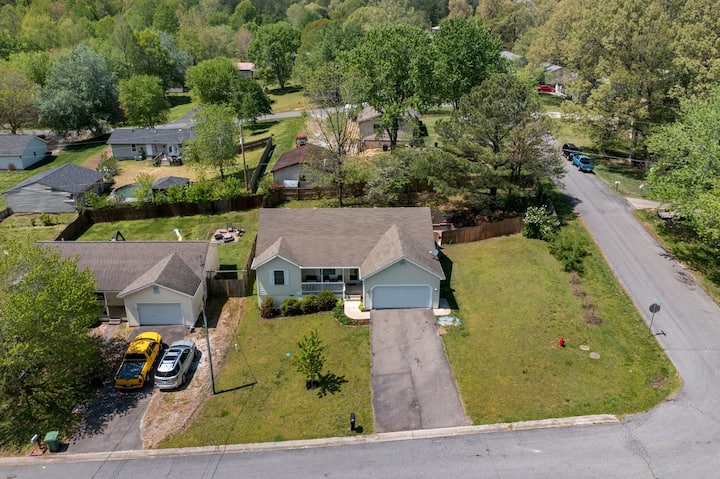 L'allée peut garer jusqu'à 4 véhicules, et un parking est également disponible dans la rue. La maison dispose de plafonds voûtés dans le salon et dans la cuisine, et de plafonds de 9 pieds dans tout le reste de la maison. Le séjour dispose d'une nouvelle télévision murale Roku 65"avec Netflix, Prime, Hulu, FireTV Stick et Chromecast. Vous aurez accès à 3 chambres, 2 salles de bain, un salon, une cuisine, une buanderie et une cour arrière clôturée avec terrasse 3 niveaux et un tout nouveau patio en pierre pavée. La terrasse arrière dispose d'un siège sectionnel extérieur qui est couvert, avec un foyer à gaz. Le patio pavé est doté d'un foyer à bois.