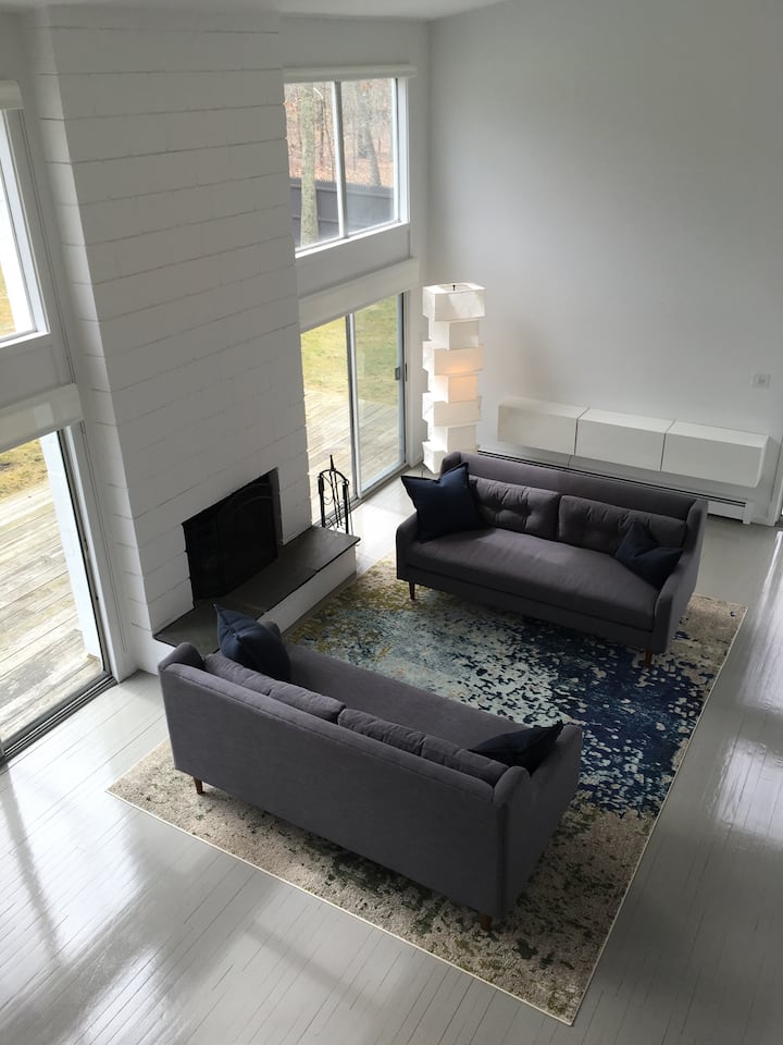 Le salon est plein de fenêtres qui font face à la piscine chauffée et à la grande cour verte. Nous sommes immédiatement tombés amoureux du plan ouvert et de l'ambiance moderne. Numéro d'enregistrement de location de la ville d'East Hampton fourni sur demande.