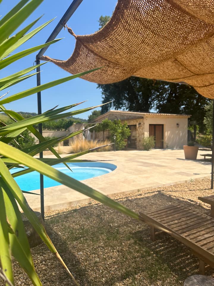 Espace d’environ 50 m², avec piscine 4x11 m, bordée de vignes et d’oliviers, bercés par le chant des cigales…