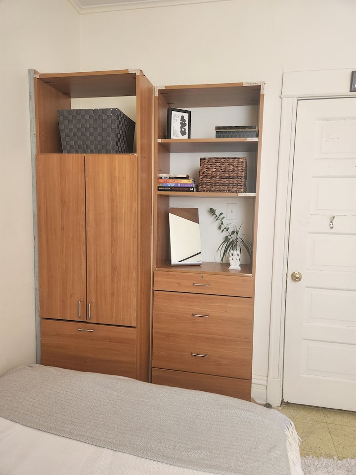 Une chambre privée dans un logement, incluant l'accès aux espaces partagés.