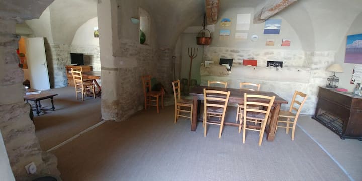 Mon travail : Dans la Ferme familiale où je suis née, j'accueille des hôtes depuis plus de 20 ans...soit en chambres d'hotes soit dans le grand gite Je propose aussi les repas le soir des recettes de ma grand-mère et les specialités de la drome provençale (j'ai partic
