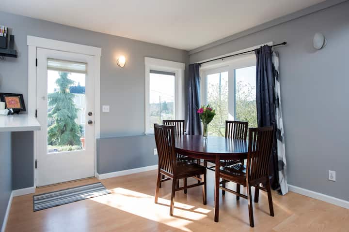 Nous vivons dans cette maison depuis plus de 20 ans. Moi, Paul, je suis un fan de golf et de mezcal. Susan est gourmande et passionnée de vélo. Nous avons une fille à l'université et un fils en route. Nous avons levé cette maison et y avons mis une nouvelle « belle-mère » séparée. C'est un appartement hors sol qui offre de superbes vues et bénéficie d'une grande lumière naturelle (pour Seattle, de toute façon). Bien que nous soyons détendus et sociables, nous sommes très conscients de votre intimité tranquille !