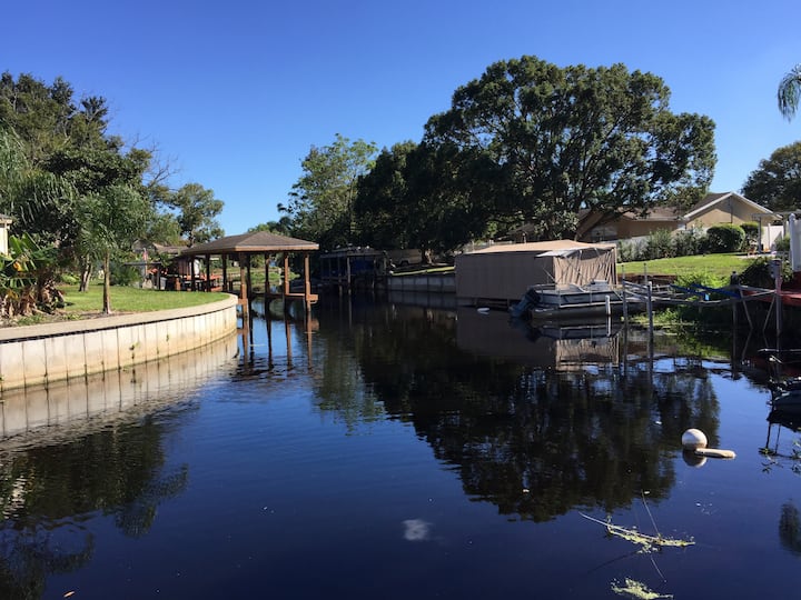 Réductions à la semaine avec piscine privée au bord de l'eau dans une oasis au bord de l'eau