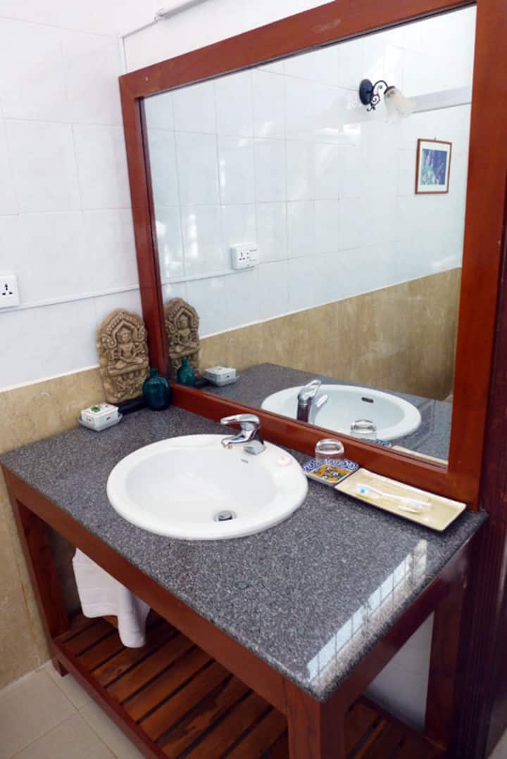 Bienvenue chez nous ! Je m'appelle Thony. J'habite à Nida Villa avec ma famille. On vient de Siem Reap. J'aime le fromage français, les chocolats, une boisson du soir avec des amis ou de la famille autour d'un bon repas. Nous parlons un peu anglais, un peu de français et ma sœur qui séjourne chez nous parle également japonais. Ensemble, nous essayons de mettre nos voyageurs à l'aise afin qu'à leur retour d'explorer Angkor, ils puissent se détendre et se sentir comme chez eux. Nous pouvons vous aider à réserver des tuk-tuks, des spectacles ou vous indiquer où aller (et pas pour aller !).
