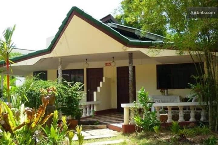 Nos bungalows disposent d'une chambre privée et d'une salle de bain privée. Vous pouvez choisir entre les bungalows qui ont un lit King Size, deux lits jumeaux, un lit King Size plus un lit jumeau ou trois lits jumeaux (LE PRIX VARIE). Nous fournissons une connexion Wi-Fi gratuite à toutes les chambres ainsi qu'un espace public. Tous nos bungalows seront équipés d'une terrasse privée, de toilettes/salle de bain standard et d'une douche standard avec chauffe-eau chaud/froid, shampoing/climatisation, climatisation, multicanal, télévision par câble, sèche-cheveux, cafetière/théière et petit réfrigérateur. Nous fournissons 2 bouteilles d'eau par jour. Vous pouvez déjeuner, prendre le petit-déjeuner et le dîner dans notre restaurant situé dans le complexe hôtelier.