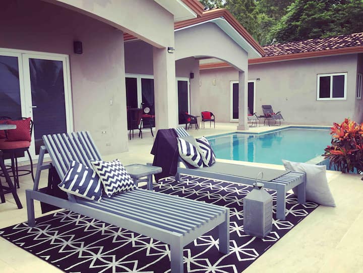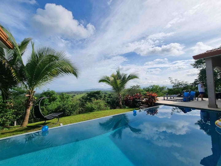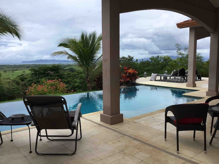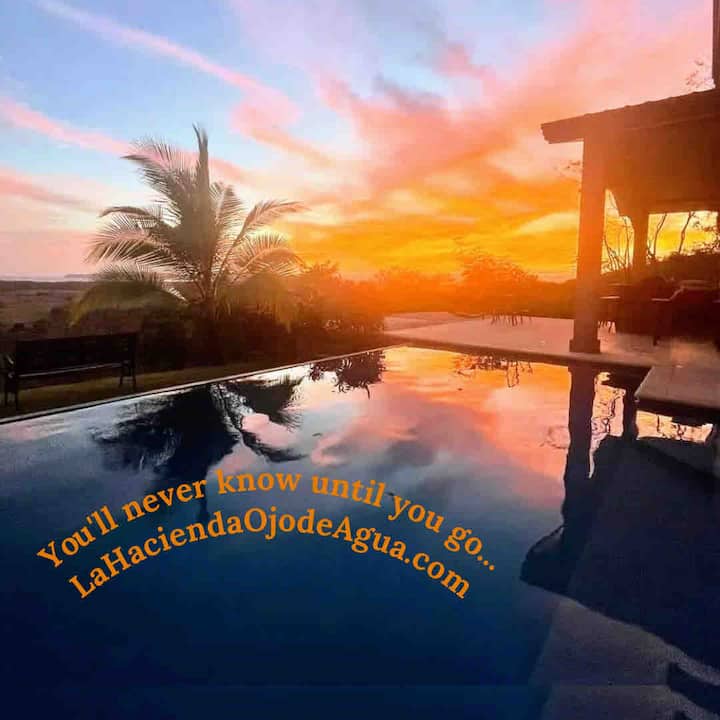 La Hacienda Ojo de Agua est une maison de campagne de luxe située au sommet d'une colline pour une intimité totale. Située à seulement 3 km de Canas et à 9 km de Playa Venao, au Panama. Vous avez une vue sur l'océan Pacifique et Isla Canas. La maison dispose de plus de 4 000 pieds carrés de surface habitable et de patios extérieurs, d'une piscine à débordement de 15 x 30 et d'une connexion Wi-Fi 4G mondiale. La terrasse donne sur les 13 acres pour l'observation des singes et des couchers de soleil incroyables.