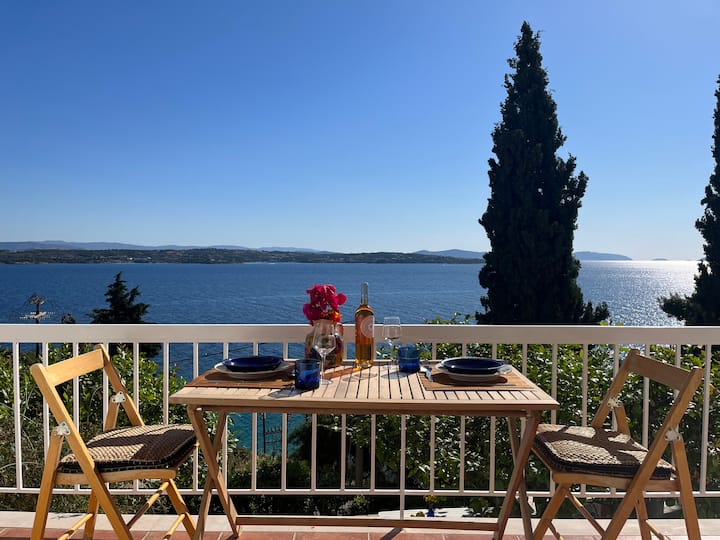 Un bel appartement d'été avec une superbe vue sur la mer dans l'île de Spetses.