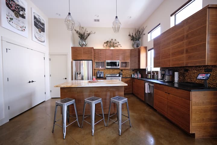 Située à 2 milles du centre-ville, cette maison de 3000 pieds carrés est la retraite ultime en ville. Trois chambres, chacune avec salle de bain privée, grand salon intérieur, cuisine de chef, balcon extérieur avec salle à manger, sièges et vue imprenable, solarium, salle de musique, avec piscine privée et spa, avec entrée sur la plage, toboggan aquatique et grotte. Cet espace comprend plus de 70 lumières à changement de couleur Hue, un système audio Sonos pour toute la maison, une Apple TV et une automatisation pour rendre vos vacances un jeu d'enfant.