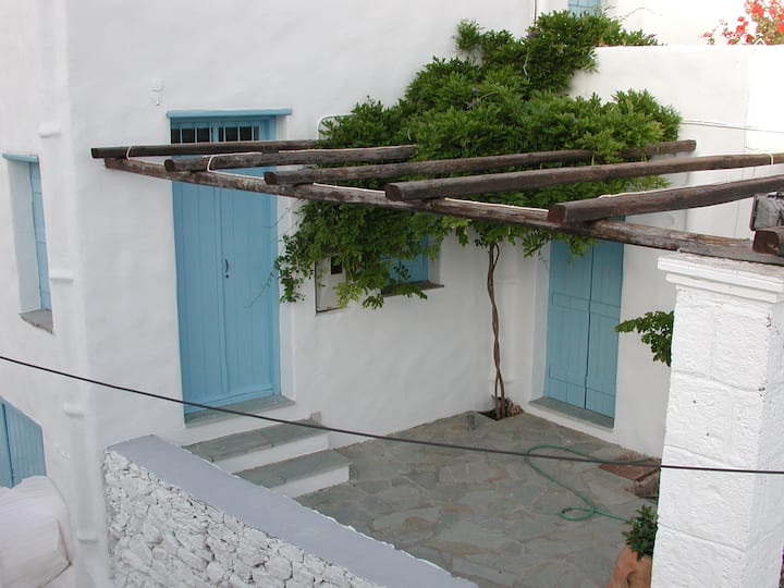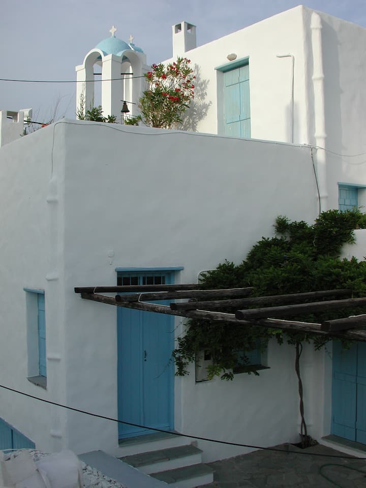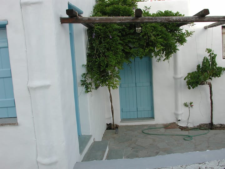 Avec mes 40 ans d'expérience en tant qu'architecte et les nombreuses années d'expérience dans la conception et la formation d'installations touristiques à Skyros (Lithari, Pithari, Villa Madalena, Patriko et d'un point de vue dans le cadre de programmes de soutien européens), j'ai créé en 1999 dans la Chora, le lotissement principal traditionnel sans voiture de Skyros, juste en face de l'église d'Agios Ioannis, un joyau : Kochylia.