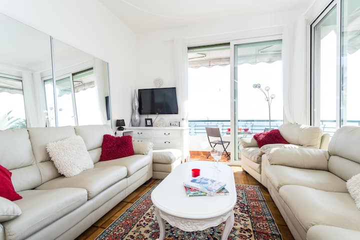 Occasion unique pour vous de simplement vous asseoir, vous détendre et profiter du meilleur de la Côte d'Azur dans nos 2 chambres, 2 salles de bains,dormir 4+1, appartement sensationnel et tranquille ! Deux chambres, deux salles de bains, deuxième étage avec ascenseur, balcons panoramiques dans chaque chambre avec vue sur la mer.WIFI gratuit.Aircditioned.42 'TV à écran plat, lecteur vidéo & CD.
