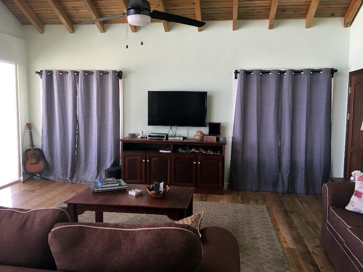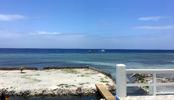 Sand under your toes, the sound of the waves lapping on the reef, palms swaying in the wind, tiny fish swimming in the lagoon, and bigger fish in the sea … Prenez votre tuba et masque et de nos propres marches privées plongez dans l'océan chaud des Caraïbes. Une courte baignade vous emmène vers certains des meilleurs sites de récifs du côté sud d'Utila!Une douche extérieure est fournie pour rincer le sel de votre peau avant de vous retirer sur votre terrasse privée, avec un verre à la main, pour admirer le coucher de soleil sur l'océan avec les montagnes en arrière-plan. Le dernier étage n'est pas accessible aux locataires et NE sera pas occupé pendant votre séjour.