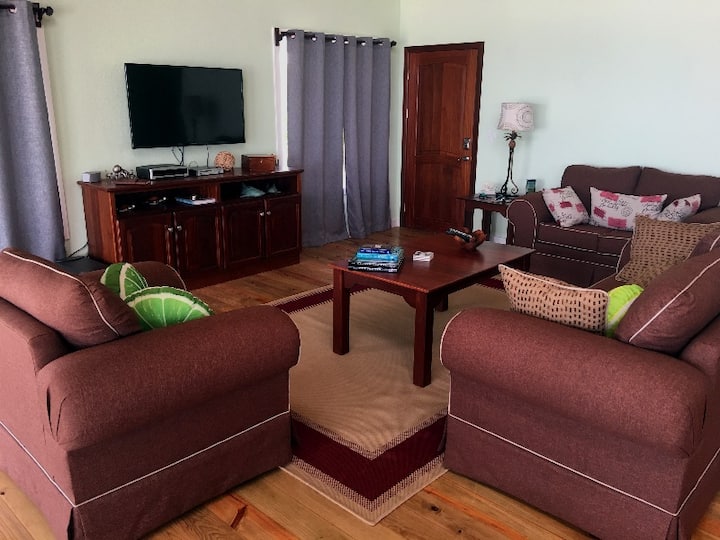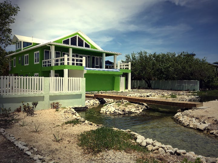 L'une des maisons les plus grandes et les plus récentes d'Utila, Key Lime Casa est située à proximité de la ville et peut accueillir confortablement 4 personnes dans 1 lit queen size et 1 lit king size avec des draps haut de gamme, chaque chambre ayant une salle de bain attenante pour votre confort. Cette toute nouvelle maison entièrement meublée offre une vue imprenable, de vastes terrasses, une piscine à débordement, de petites îles privées et un lagon privé pour profiter des levers et des couchers de soleil spectaculaires, ou pour vous immerger dans de longues journées paresseuses au bord de l'eau.