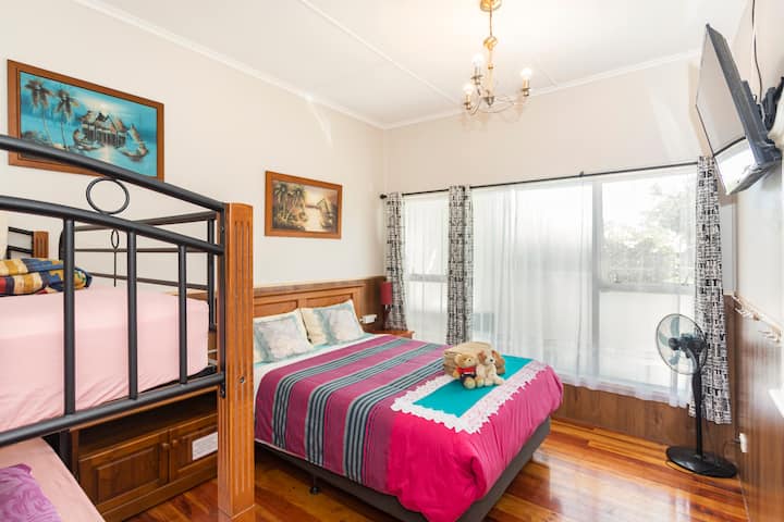 Chambre quadruple n° 2 - près de l'aéroport d'Auck, train, bus