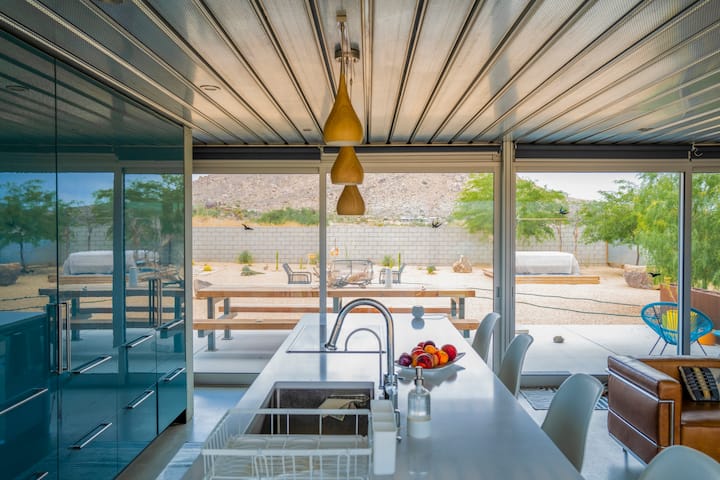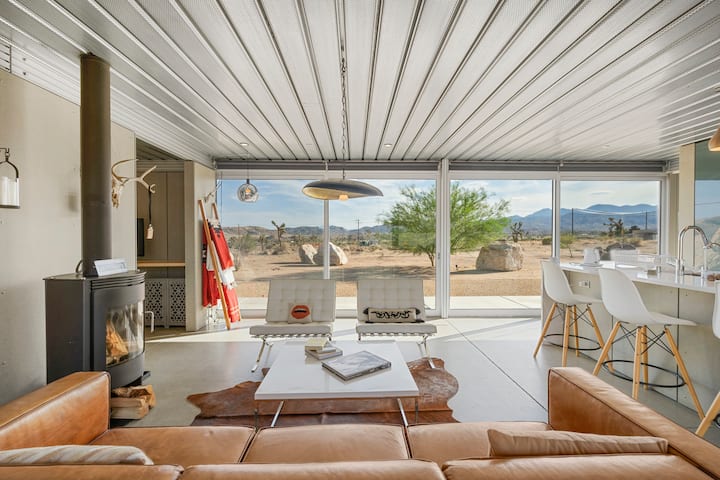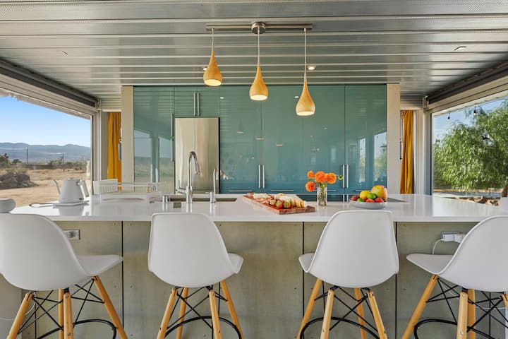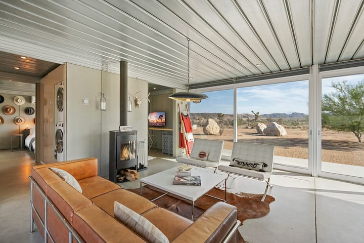 Bienvenue à Pam & Phil 's Acacia itHouse, un logement écologique et architecturalement innovant, avec un design moderne et ouvert pour des vues panoramiques ; stratégiquement construit pour l'intimité et le soleil/les ombres optimales. À seulement cinq minutes de Pappy & Harriets, Red Dog Saloon, et plus encore. Une expérience pure à Pioneertown dans le désert !