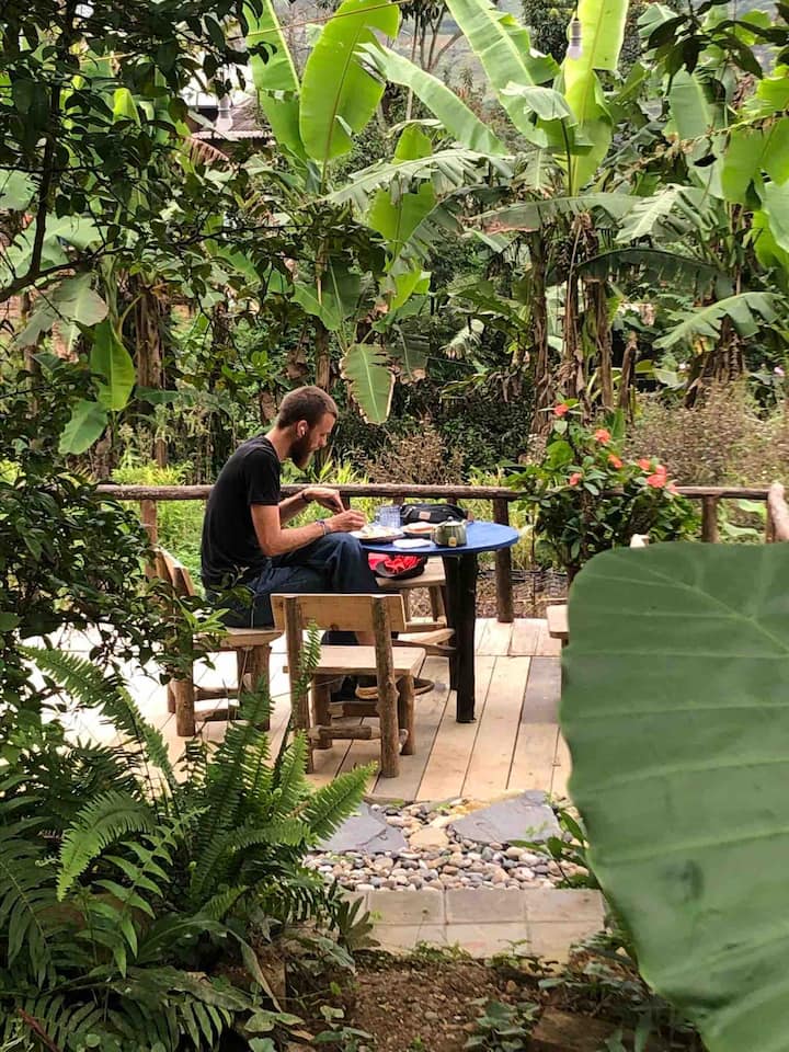 Il y a 4 chambres privées et 4 salles de bains dans notre maison, des fenêtres pour le soleil et la vue sur la montagne, un balcon, une cheminée où nous nous asseyons la nuit en hiver, partageons les histoires des autres, jouons à des jeux, avons des tasses de thé ou des verres de vin local, 2 grandes terrasses pour faire du yoga et profiter du lever et du coucher du soleil, une cuisine partagée pour tout le monde cuisiner ensemble, faire du café, du thé, des bureaux et des chaises, des canapés pour travailler à la maison, des salles de bains et des toilettes à haute pression d'eau.