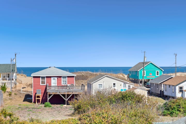 Idéalement situé à seulement un pâté de maisons, ou à 3 minutes à pied, de la plage au cœur de Kitty Hawk, le bungalow de Jo offre une vue pittoresque sur l'océan Atlantique et un accès facile à un large éventail de restaurants et de commodités sur les Outer Banks. Avec un étage principal et à la fois un niveau intermédiaire et une terrasse de haut niveau, cette maison de style box de plage classique offre tout ce dont vous avez besoin pour des vacances fantastiques et centrées sur l'océan.
