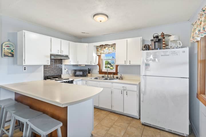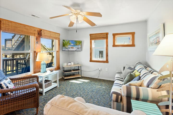 Le bungalow de Jo est un charmant chalet en bord de mer à Kitty Hawk, à seulement 3 minutes à pied de l'accès à la plage de Balchen Street. Cette maison confortable dispose de 2 chambres, d'un divan-lit et de terrasses avec une vue imprenable sur l'océan. Profitez du cadre résidentiel paisible, de la douche extérieure et de la cuisine toute équipée. Les attractions à proximité comprennent Sea Scape Golf Links, Kitty Hawk Woods Coastal Reserve et d'excellents restaurants locaux comme Art's Place et Ocean Boulevard Bistro.