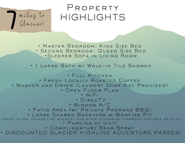 On adore Glacier, on ne pourrait pas imaginer élever notre famille ailleurs. Nous sommes impatients de nous assurer que votre séjour à Glacier est votre maison loin de chez vous.