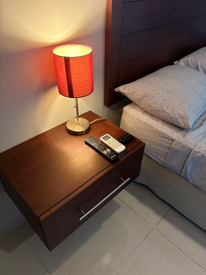 Une chambre avec wifi bien aménagée pour travailler.