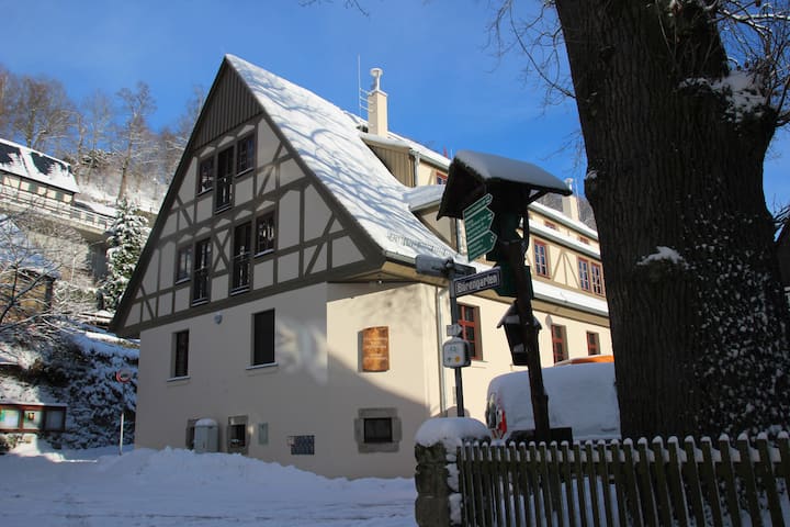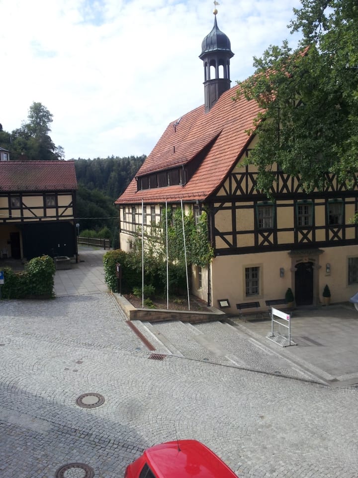 J'habite dans la magnifique Suisse saxonne dans la petite ville à colombages de Hohnstein. Les rochers et la forêt commencent à quelques mètres de ma maison.