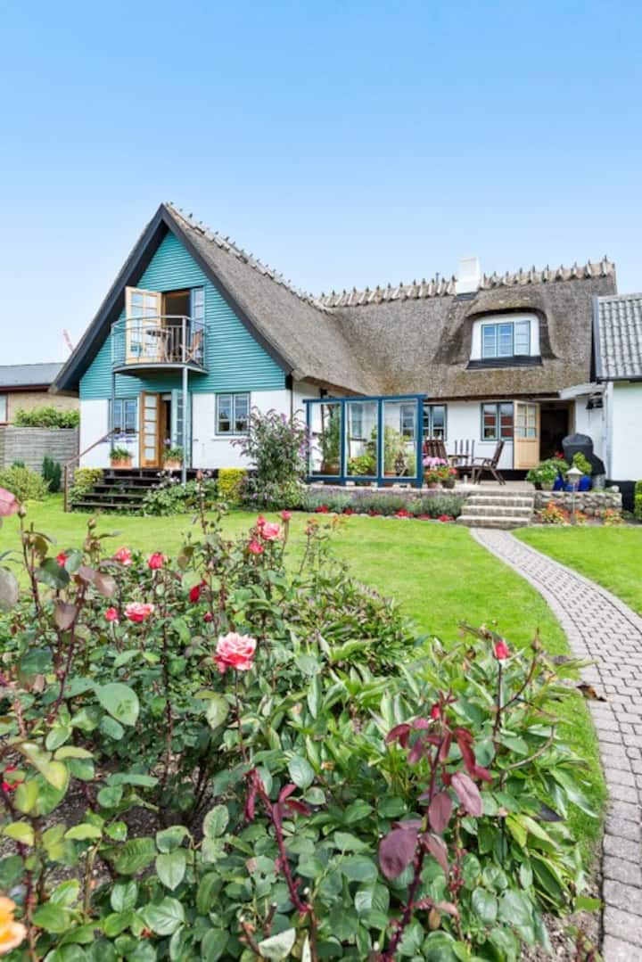 La maison dispose d'un toit de chaume, d'un jardin fleuri et d'une atmosphère historique, mais aussi d'équipements modernes tels que le Wi-Fi.