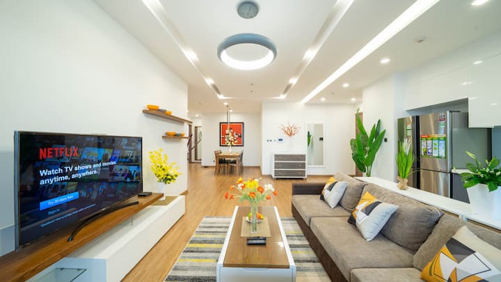 Notre appartement appartient à Vinhomes Metropolis - une toute nouvelle tour, avec 4 étages commerciaux où il y a un supermarché, des cinémas, des restaurants et bien d'autres. C'est un dîner pratique pour une famille ou un groupe d'amis de rester. L'appartement exclusif est situé au centre de Ba Dinh - le quartier animé de Hanoï qui est à seulement 15 minutes du vieux quartier, du lac Hoan Kiem et d'autres destinations touristiques. Si vous n'êtes pas dans les aventures, mais que vous restez plutôt à la maison pour vous évader de l'agitation, offrez-vous sur le canapé confortable près de la fenêtre donnant sur la ville et un petit coin de West Lake - le plus grand lac de Hanoï. Ne vous inquiétez pas si vous êtes trop paresseux car le supermarché VinMart, les restaurants, le café Starbuck, le cinéma CGV et beaucoup d'autres encore sont juste en bas.