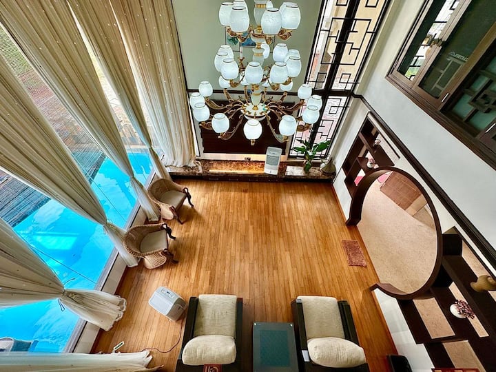 Les clients ont accès à l'ensemble de la LF Tropical Pool Villa 1 (LF Pool Villa 1) ainsi qu'au Wifi gratuit, au parking gratuit (2 voitures dans le porche et 4 voitures dans la rue le long de la limite du bâtiment), à la piscine, au belvédère avec table et chaises en bois massif, à la table barbecue extérieure, à la cuisine complète avec cuisinière à induction, cuiseur à riz, grille-pain, friteuse, micro-ondes, réfrigérateur, casserole et poêles, utilisation d'un lave-linge et d'un séchoir.