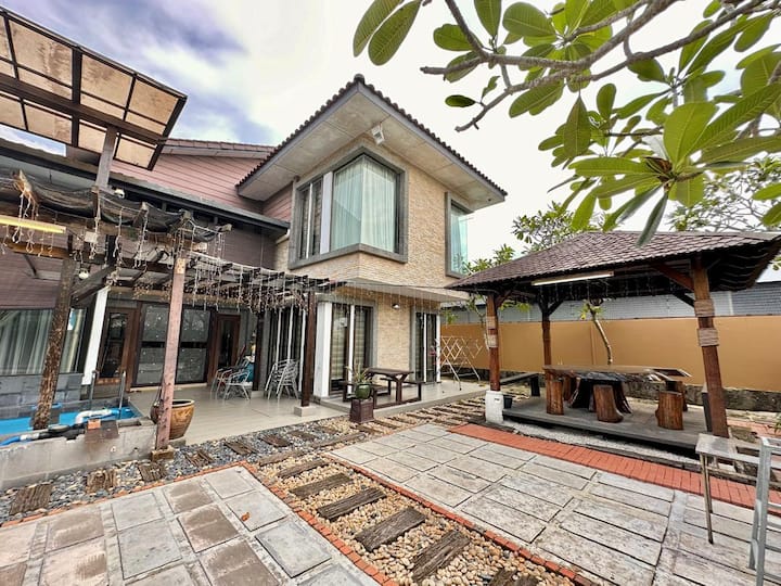 客人可以使用整个LF Tropical Pool Villa 1 (LF Pool Villa 1),免费WIFI,免费停车(车库可停2辆车,民宿边界沿街停车可停4辆车),游泳池,凉亭(配有实木桌椅),户外烧烤桌,全套厨房(包括电磁炉、电饭煲、烤面包机、空气炸锅、微波炉、冰箱、锅和煎锅),以及洗衣机和晾衣架。