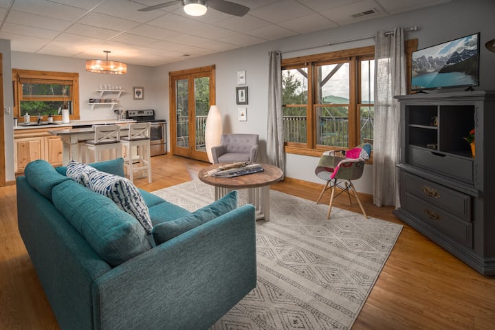 Dormez dans les TreeTops, à quelques minutes seulement du cœur de Boone. C'est le dernier étage d'un duplex. Chaque étage est privé sans espaces partagés. Entrée séparée + allée, 1 chambre King, 1 chambre Queen Size et 1 salle de bain dans une maison résidentielle.
