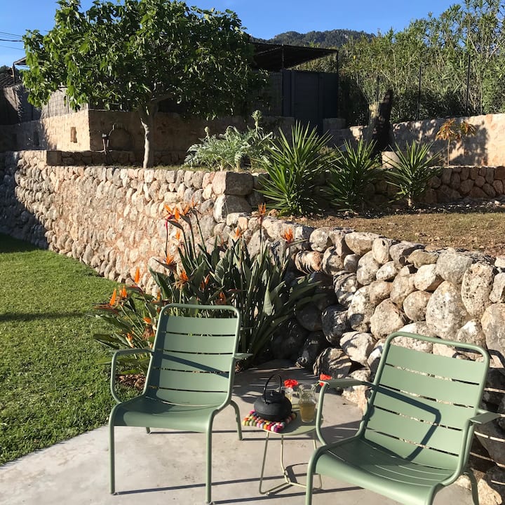 A-LOCATION ABSOLUE | Une base idéale, dans le vert mais toujours proche du vieux centre et pas complètement isolée de la vie locale. Facile d'accès à pied ou en voiture avec 2 places de parking privées. En traversant les petites rues espagnoles, il est difficile d'imaginer que derrière le portail en fer ouvre une vue panoramique sur la chaîne de montagnes approximative de la Sierra Tramuntana. Et une bonne position au soleil fait de La Basa une excellente escapade toute l'année!