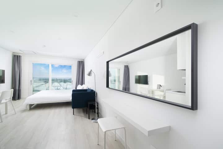 Toutes les chambres ont une vue sur l'océan, de sorte que vous pouvez voir Marado et Gapado sur la droite, et vous pouvez voir le magnifique paysage de la direction de Hallasan en un coup d'œil à l'arrière.