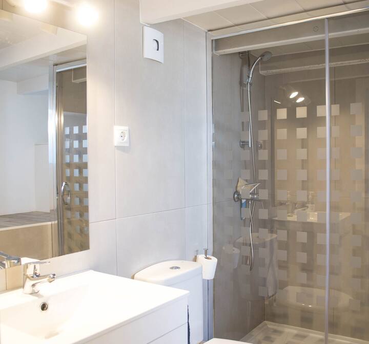 Chambre spacieuse très lumineuse avec salle de bain privée.