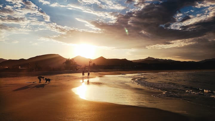 C'est sur LE spot de surf. Meilleure pause surf, meilleure partie de la plage de Cerritos à quelques pas de la copropriété. Tu peux tout voir. Les locaux et les expatriés de Cerritos créent une excellente communauté de surf qui vous soutient. Ils ne t'effraient pas. Respectez tout le monde et ils vous respecteront.
