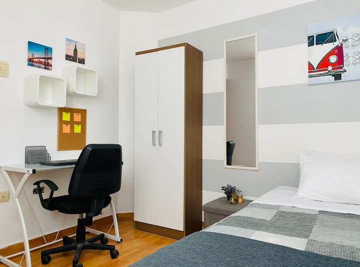 Une chambre privée dans un logement, incluant l'accès aux espaces partagés.