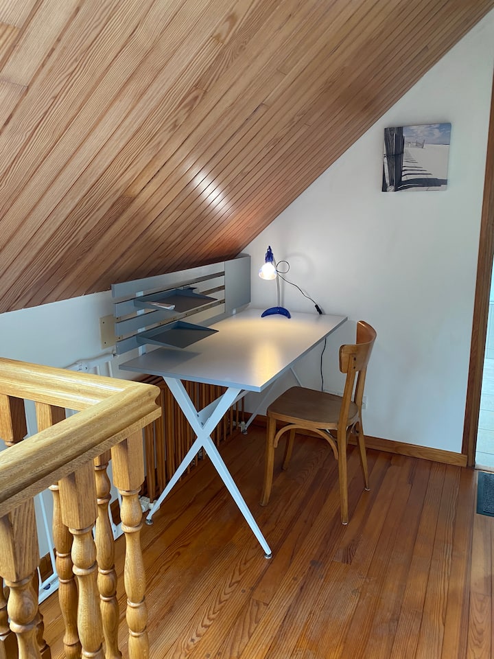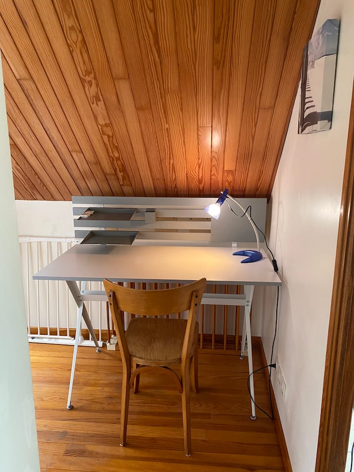 Un espace commun avec wifi, bien aménagé pour travailler.